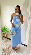 Vestido Tomara Que Caia Midi Tubinho Com Fenda Gringa Canelado Ribanna