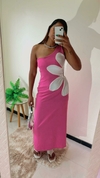Vestido Feminino Inspiração FARM Forma Flor Lançamento Tecido Duna Ajustável Um Ombro Com Bojo